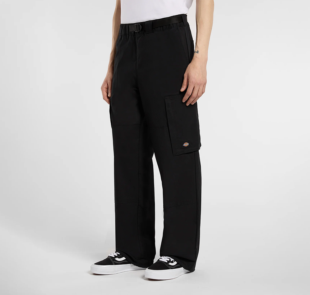The Coalfield Double Knee Trousers work as hard as you do. They're a loose-fitting, rugged, technical work pant with signature Dickies DNA. The stretchy polycotton fabric feels soft yet functional, combining all-day comfort with practicality. Workwear-inspired features include front and back pockets: one with a snap closure and one open. There are also additional practical zippered pockets on the legs, a pressed crease on the front and back for a sophisticated look, and the iconic woven Dickies label on the front left.