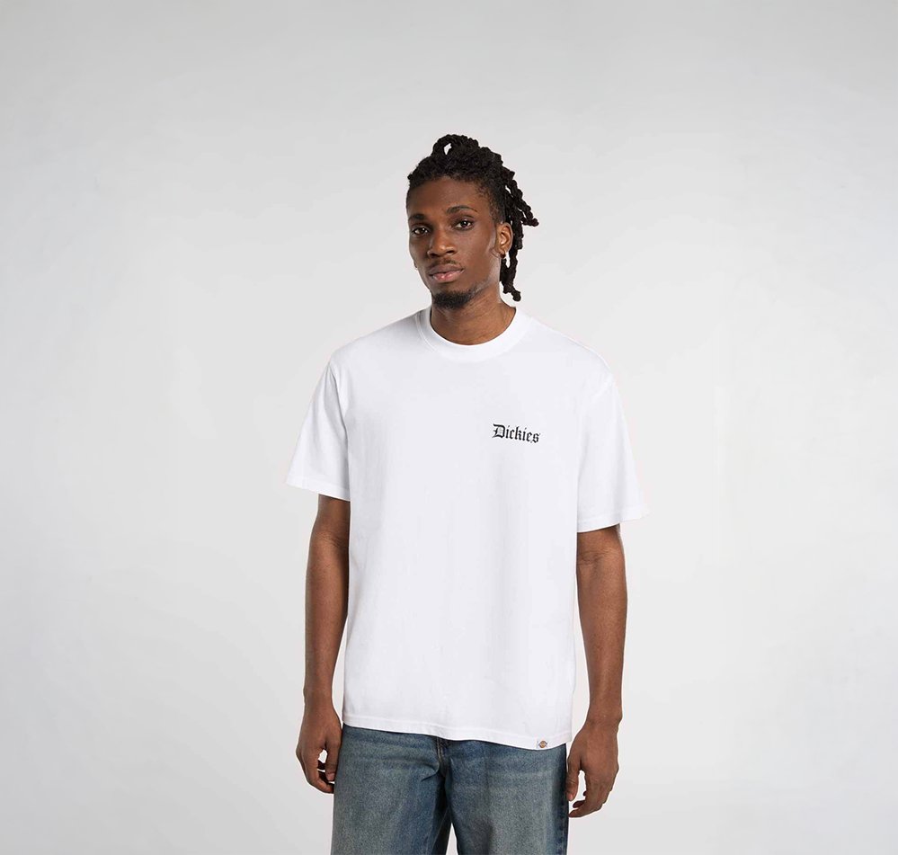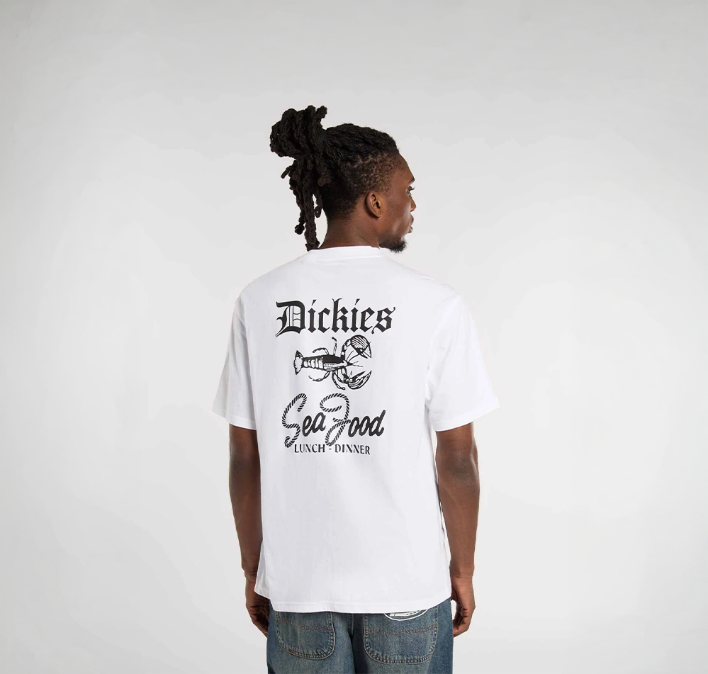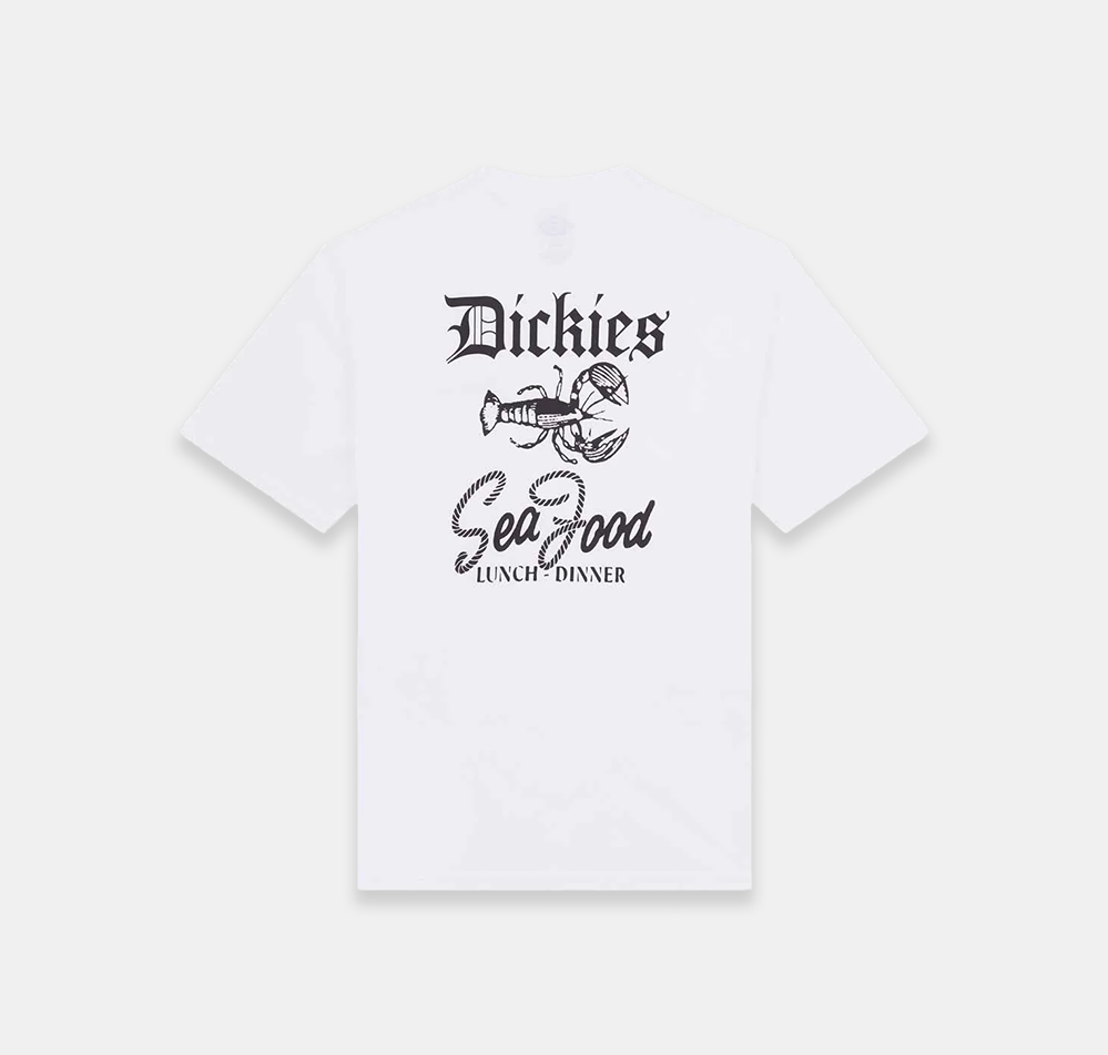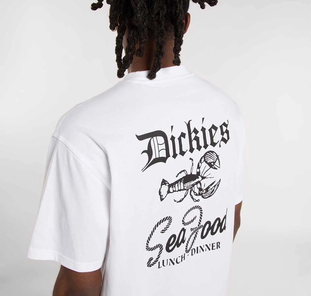 The Dickies Diner short-sleeved T-shirt is a comfortable graphic tee, ideal for everyday wear and celebrating the rugged dockside life. It features a restaurant-inspired design on the back and is finished with the iconic woven Dickies loop label at the hem.