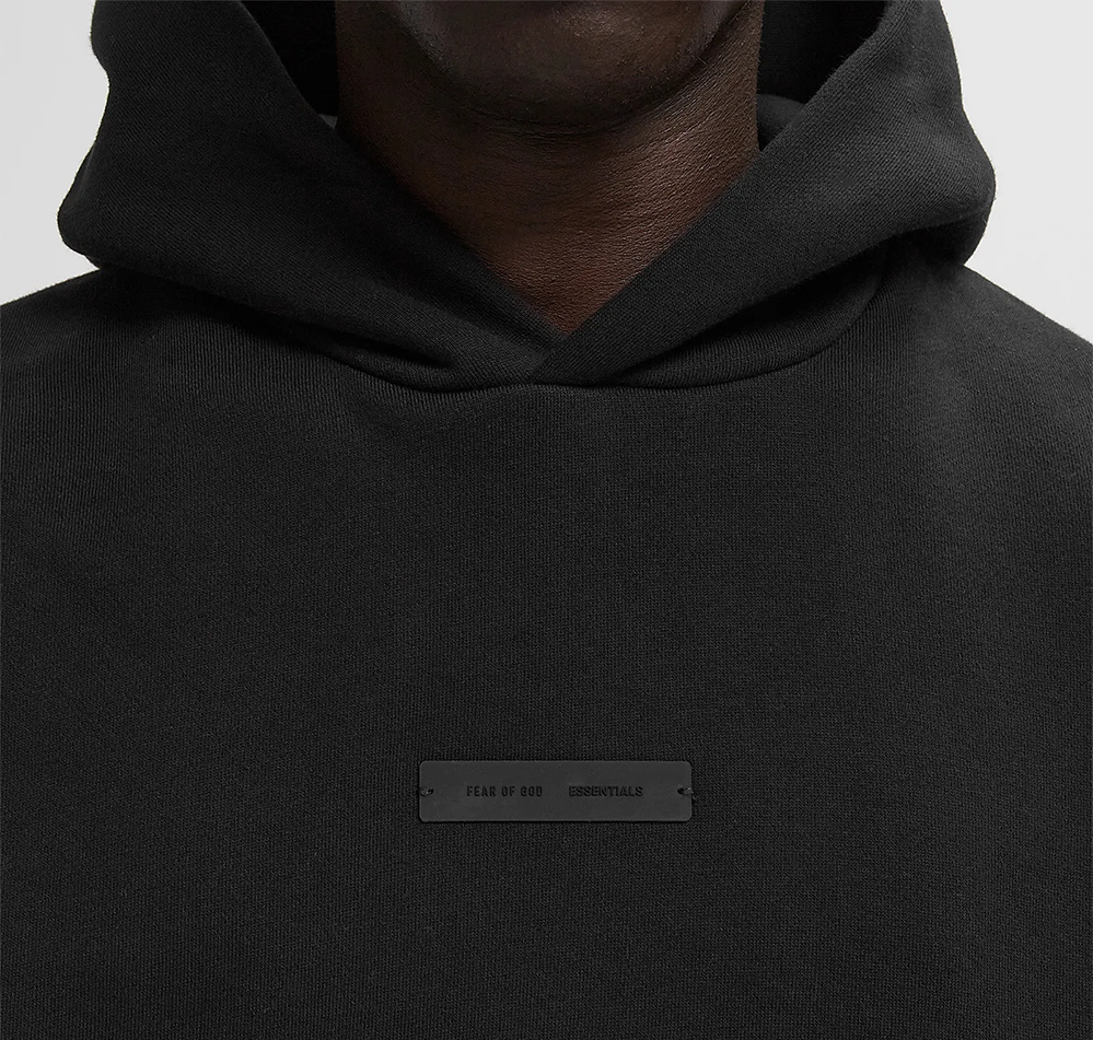 - Transparent, rubberized Fear of God Essentials label