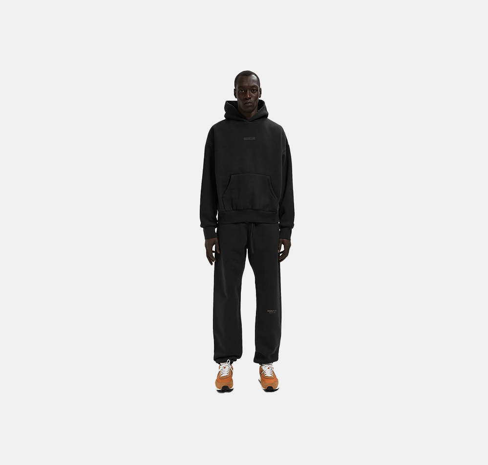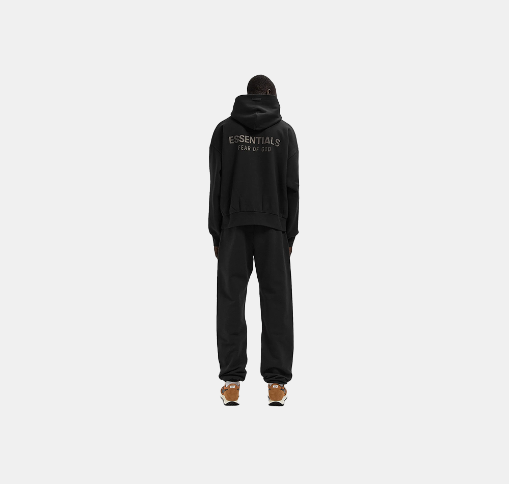 The Essentials Classic Hoodie by Fear of God is made from 380 g/m² core fleece and offers ideal comfort and an optimal fit. The hoodie has a classic fit with Fear of God's signature relaxed proportions. A new, slanted Essentials Fear of God logo in metallic is featured on the back. Details include a double-layered hood, a kangaroo pocket, and ribbed cuffs and hem. A rubberized Fear of God Essentials label is sewn onto the hood and sleeve.