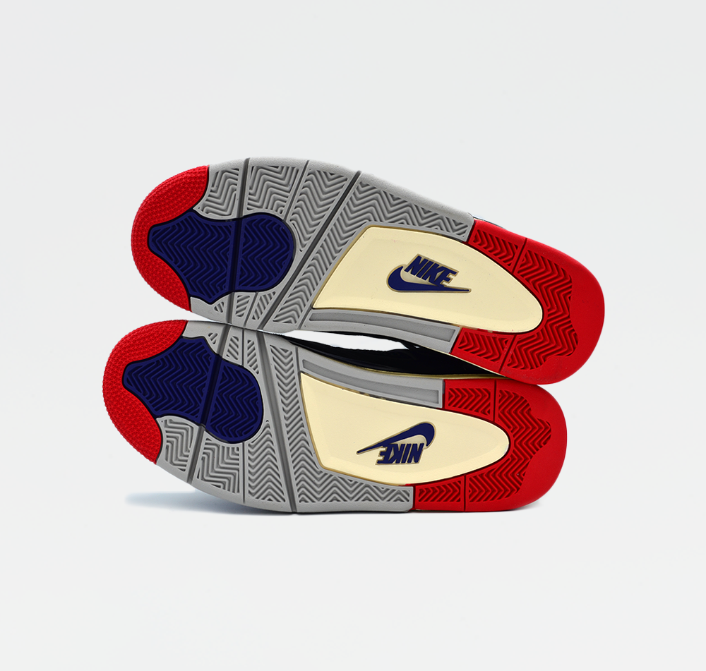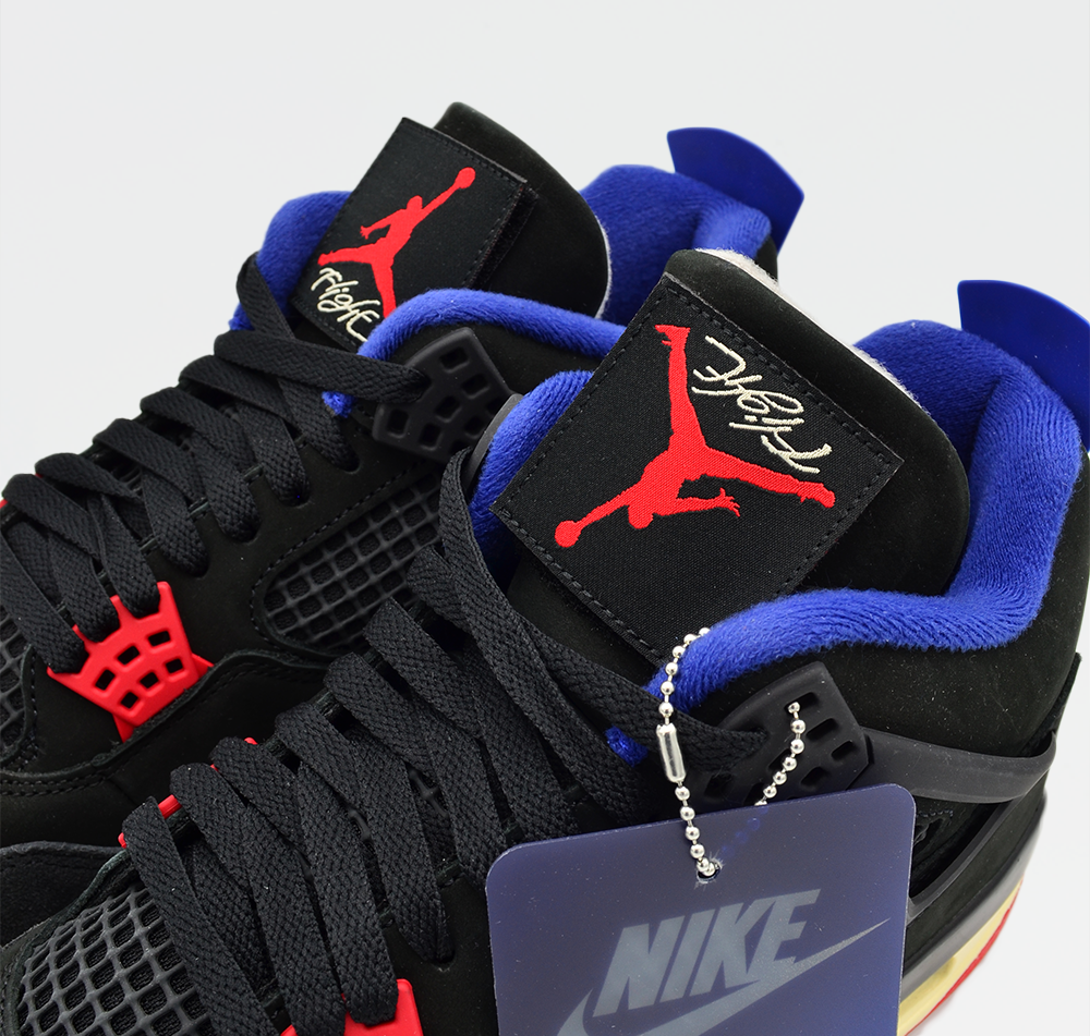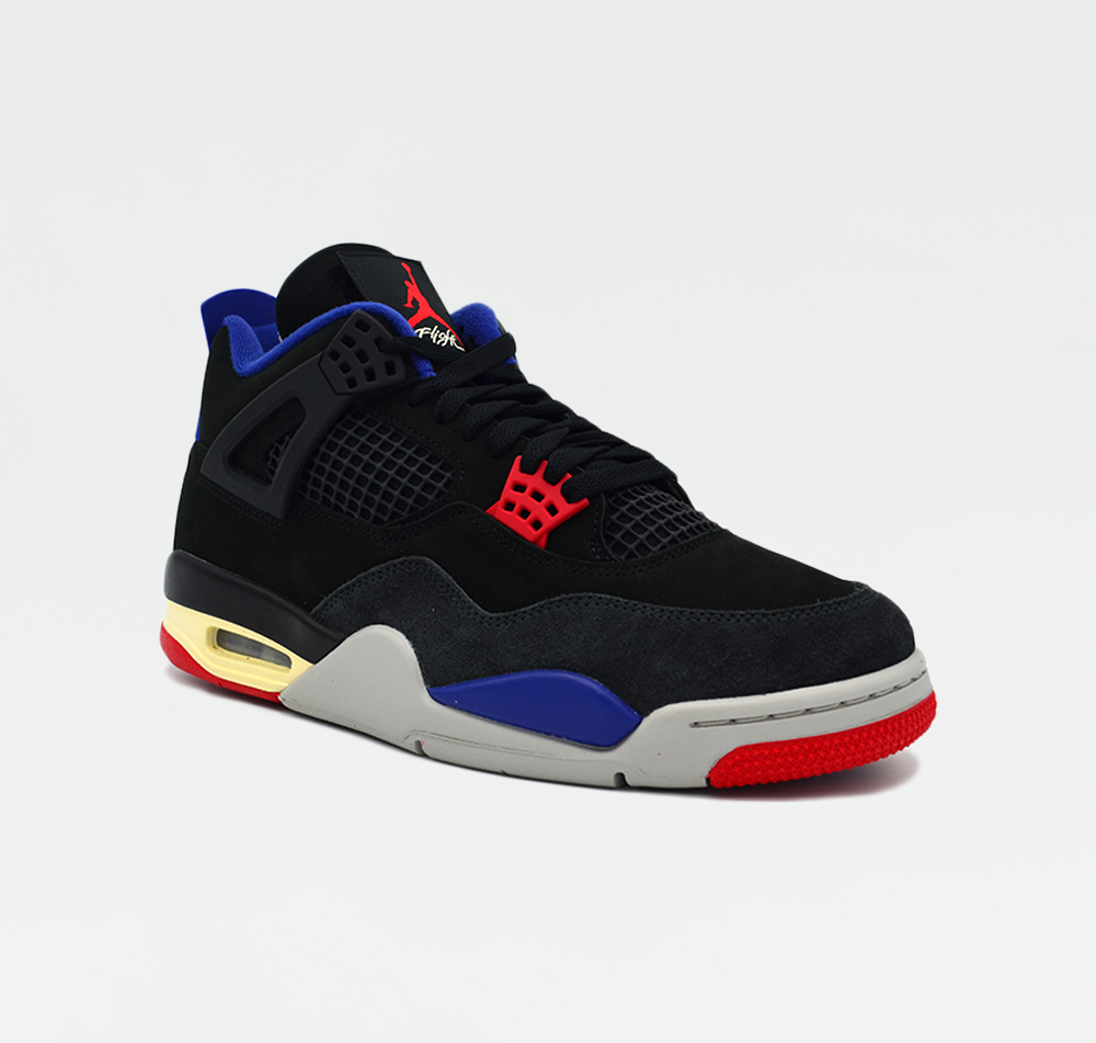 The Jordan 4 Retro Rare Air (Gold Lettering) brings that classic court energy with a fresh twist that hits different. Built on a sharp Black/Fire Red/Deep Royal Blue/Dark Smoke Grey/Tech Grey mix, this AJ4 flexes bold contrasts and layered textures that demand attention. That metallic gold script on the heel? Pure heat—it's the signature move that makes this colorway unmissable. You're getting all the Jordan 4 essentials: mesh panels, molded eyestays, and TPU wings that keep it 100% authentic. The visible Air unit cushions your step while the herringbone outsole grips everything from concrete to hardwood. The padded collar and sculpted heel tab make it easy to slip on and go, whether you're hitting the streets or the gym. Deep Royal Blue accents pop across the overlays and laces, plus you get an extra set of blue laces to switch up your vibe whenever. Style code FV5029-003 dropped July 26, 2025—this is the one to have. Rock it with tailored joggers for that elevated look or throw it on with a tee and jeans for pure street credibility. Comfort, heritage, and customization all locked in.
