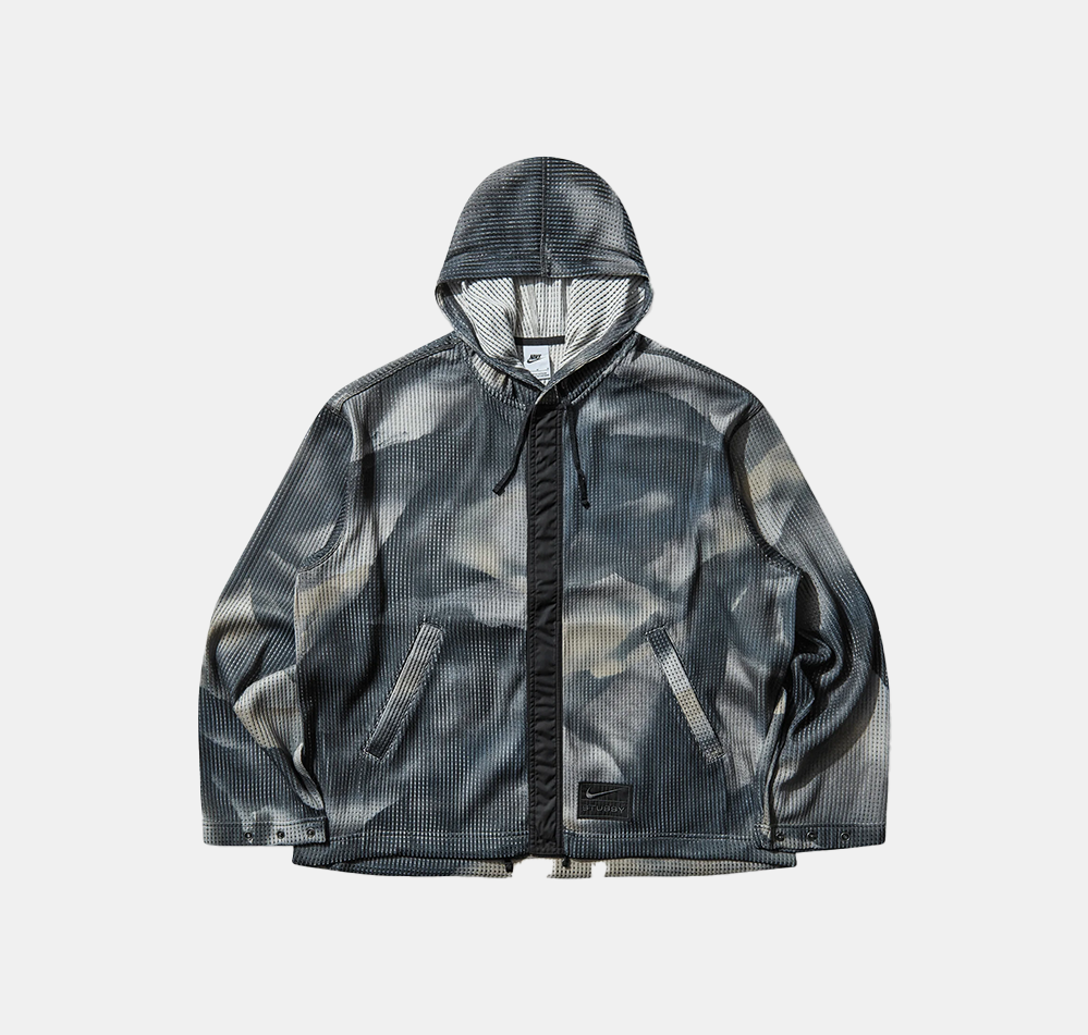 This camo jacket takes cues from surplus styles, rocking a breathable mesh body and a sleek woven placket. It’s got a chill, standard fit that’s roomy without being bulky. The adjustable hood drawstring lets you dial in your vibe, while the embroidered co-branding flexes the collab and adds that next-level detail.