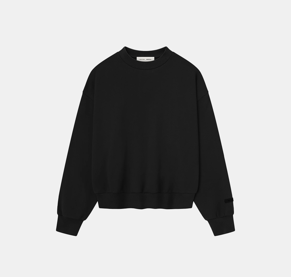 The Classic Fit Crewneck is made from 380gsm core fleece to provide ideal comfort and structure. The piece features a classic fit with signature Fear of God relaxed proportions. A new "Essentials Fear of God" beveled metallic logo is branded across the back. Details include rib-knit collar, cuffs, and waist-hem. A Fear of God Essentials rubberized label is stitched on the sleeve.