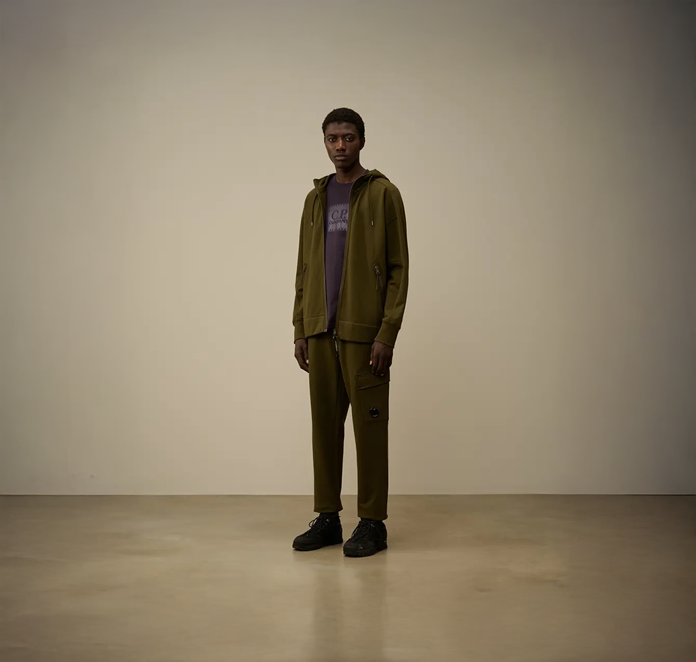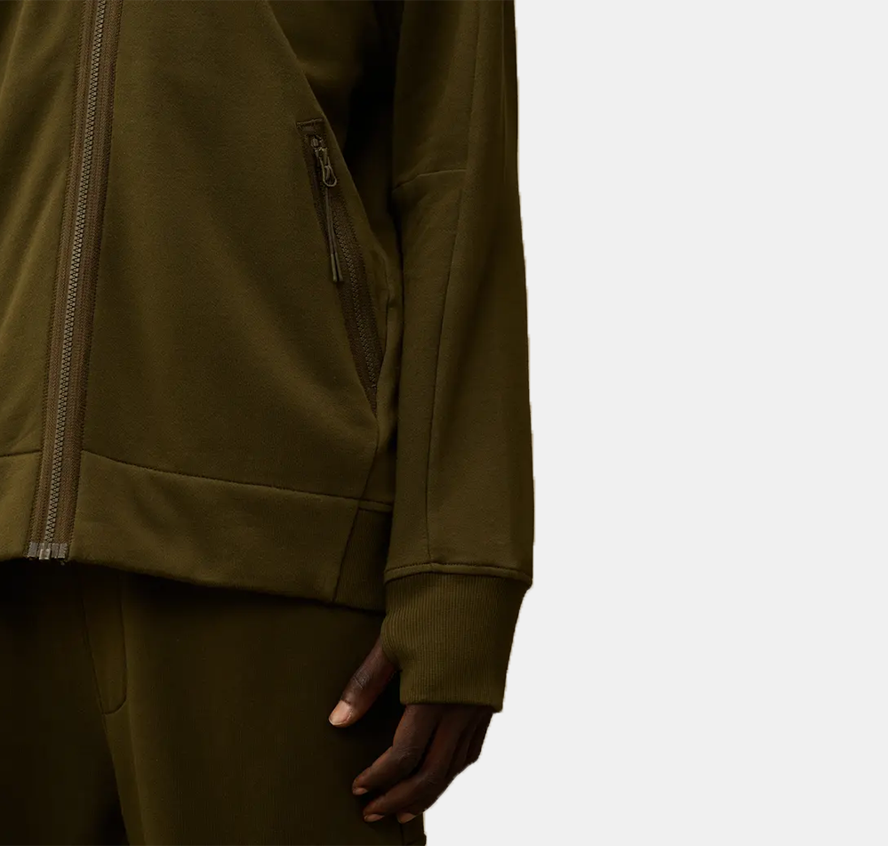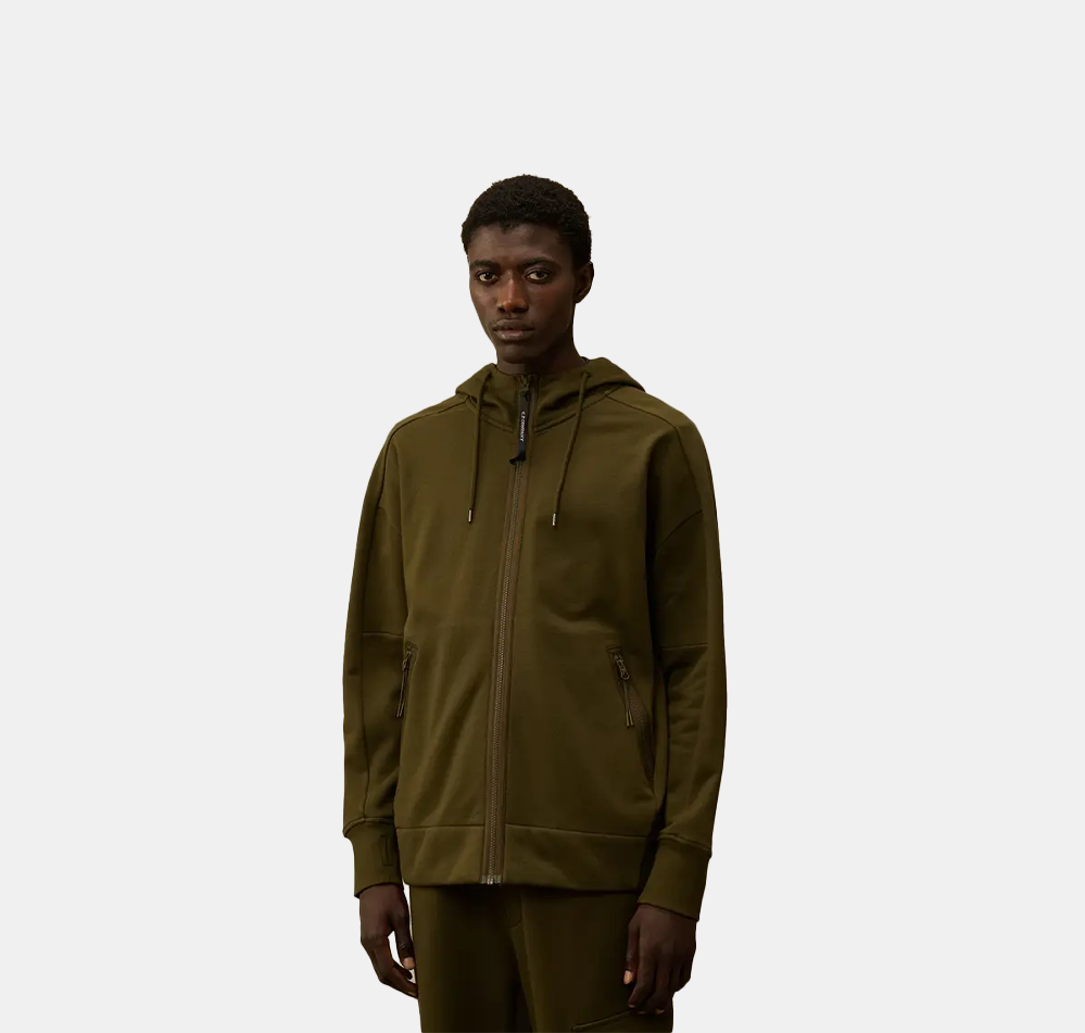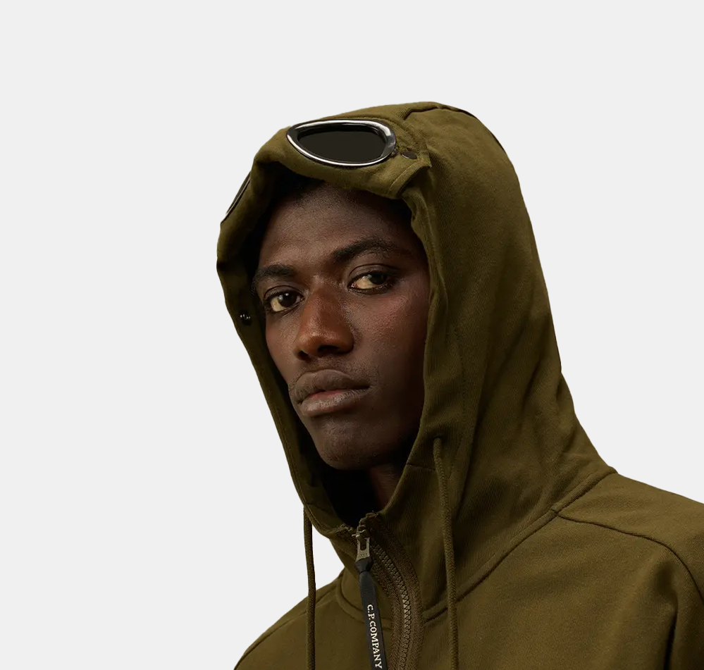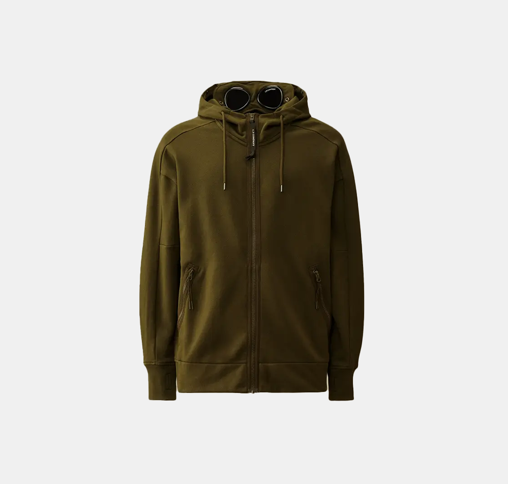 Diagonal Raised Fleece Goggle Zipped Hooded Sweatshirt Dark Green