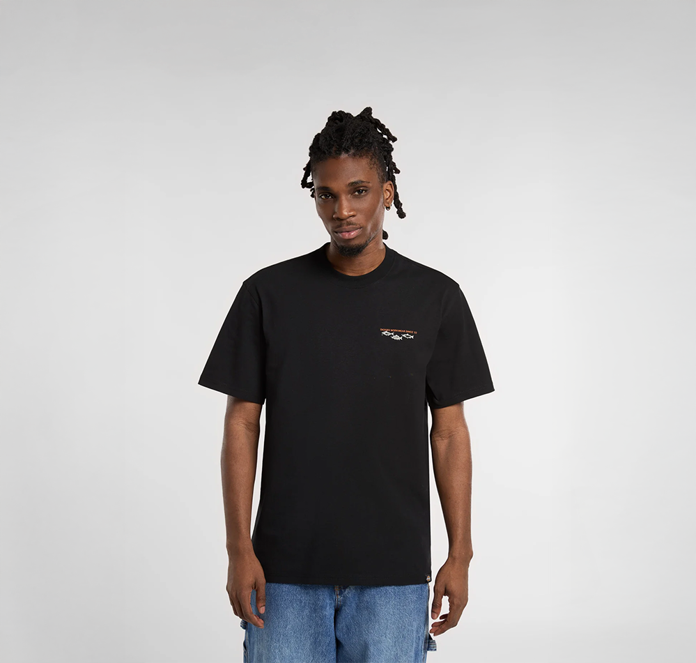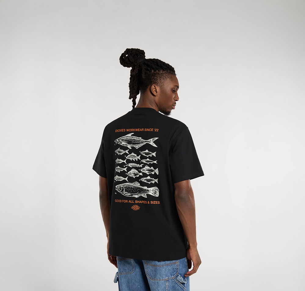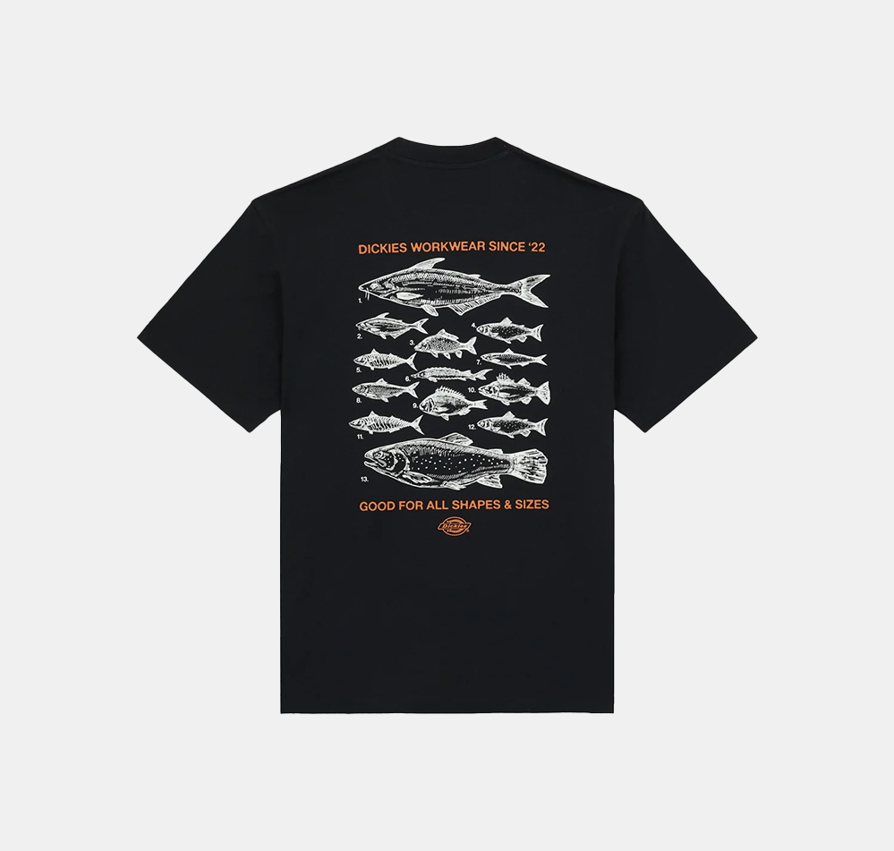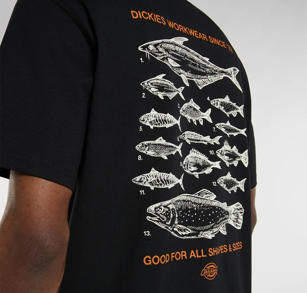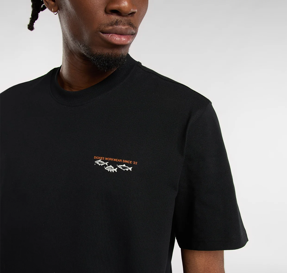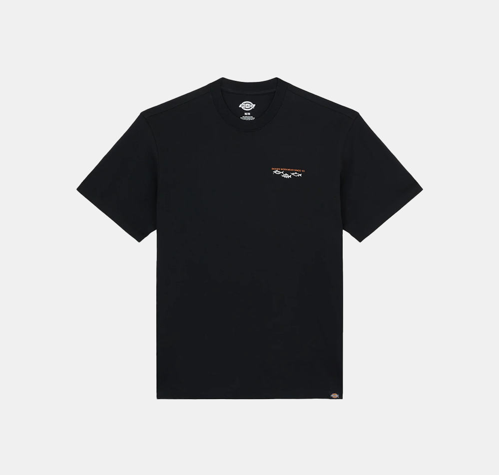 The Laryville short-sleeved T-shirt, made from durable cotton jersey, is long-lasting, comfortable, and evokes outdoor adventures. It features a print on the front and back, as well as a woven Dickies loop label at the hem.