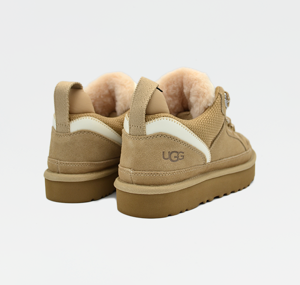 Grab the UGG Lowmel Sand Women's—a hybrid lace-up that merges boot attitude with sneaker comfort. Engineered from rugged ballistic canvas mesh and supple suede, it's made to last through your daily grind. The versatile silhouette works solo or layered, giving you options depending on your mood. Dial in the fit with the laces or keep it relaxed for that laid-back feel. Minimal design that pairs with everything.