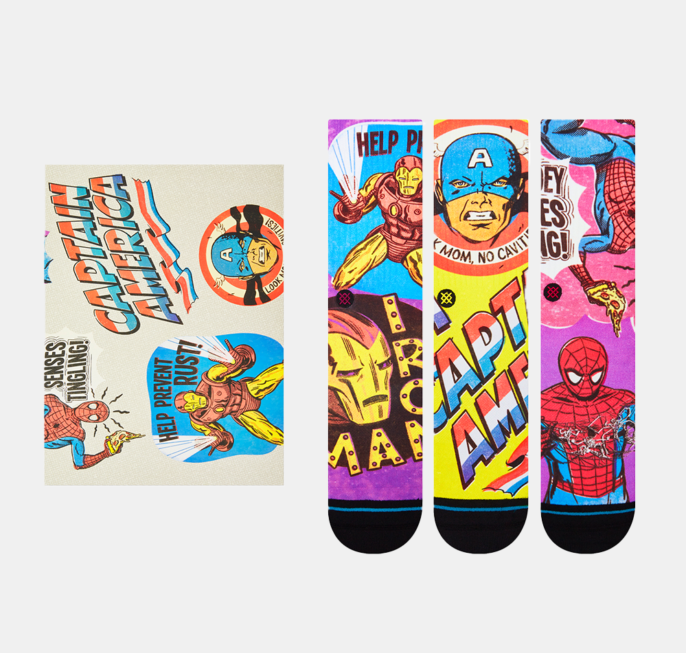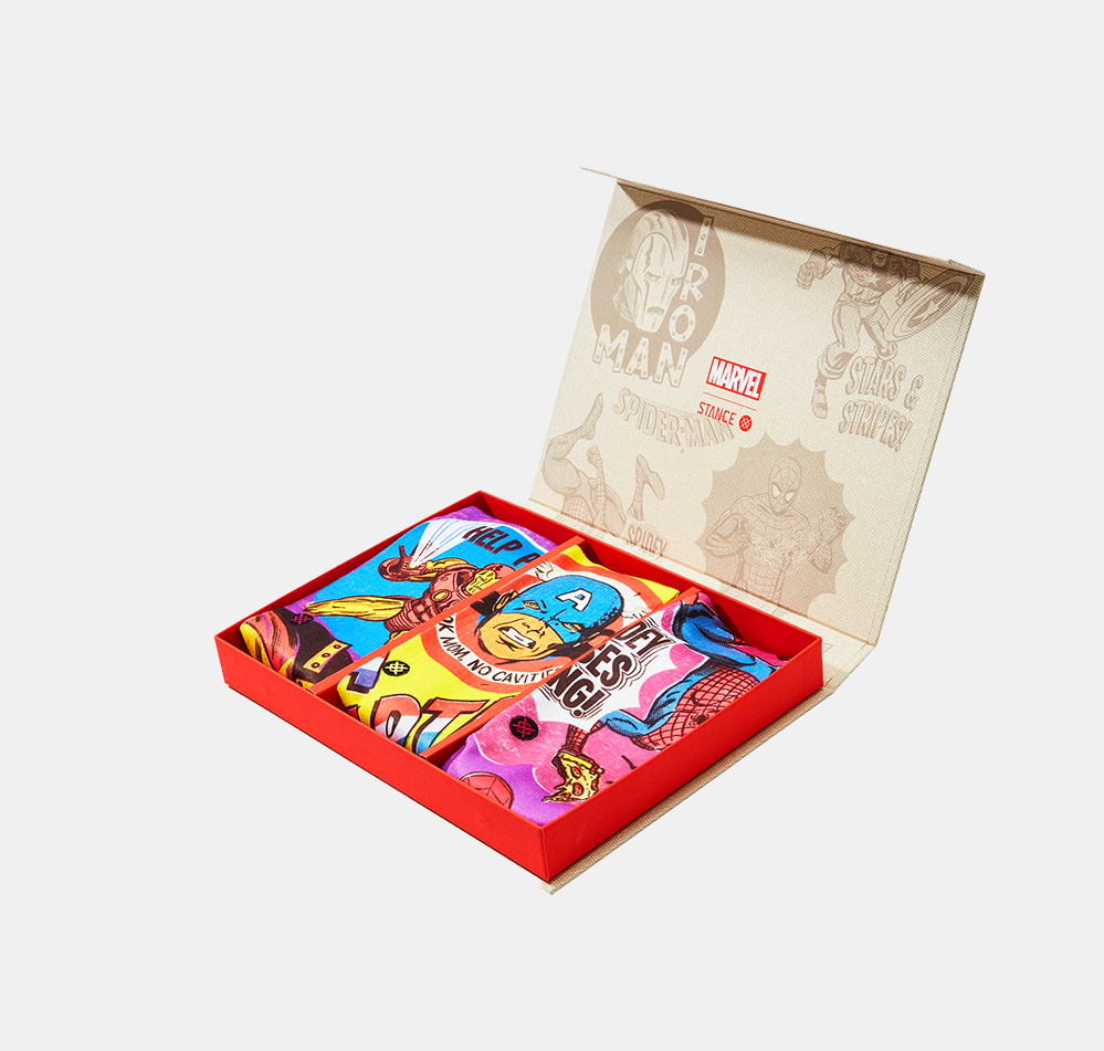 Rock the ultimate superhero style with the Stance x The Marvel Crew Box Set Socks. Showcasing iconic Marvel characters, these socks pack a street-wise punch. With comfortable and durable construction, these socks will have you feeling invincible all day long. Level up your sock game and unleash your inner superhero.